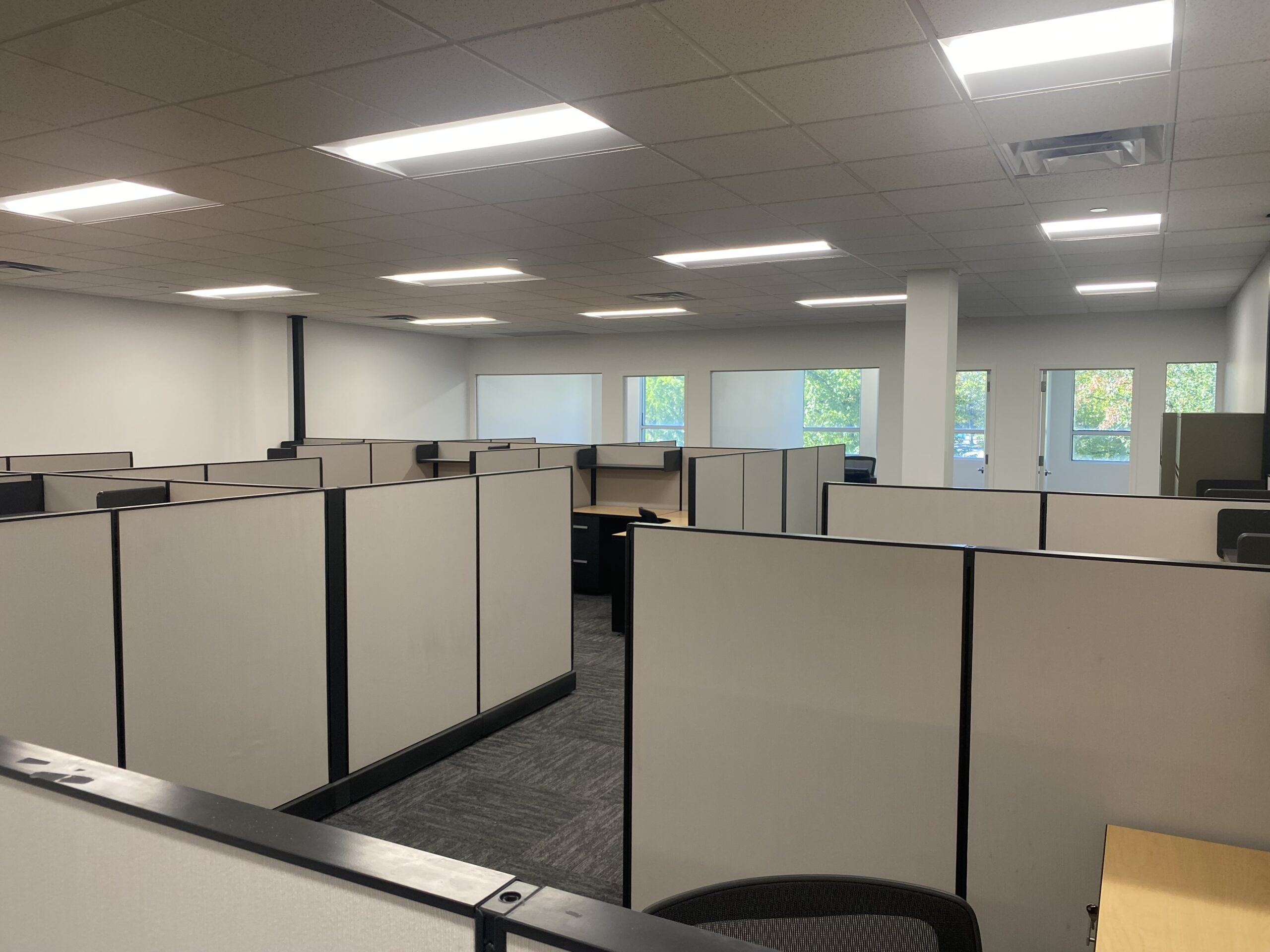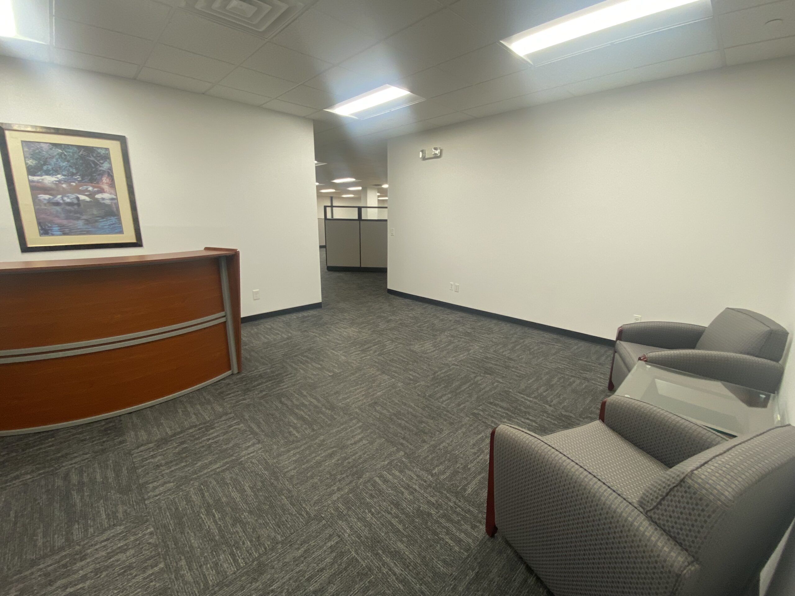 Two windowed offices, a conference room, semi-private reception area, glass double door entry and open bullpen with brand new carpet, paint and LED lighting throughout.